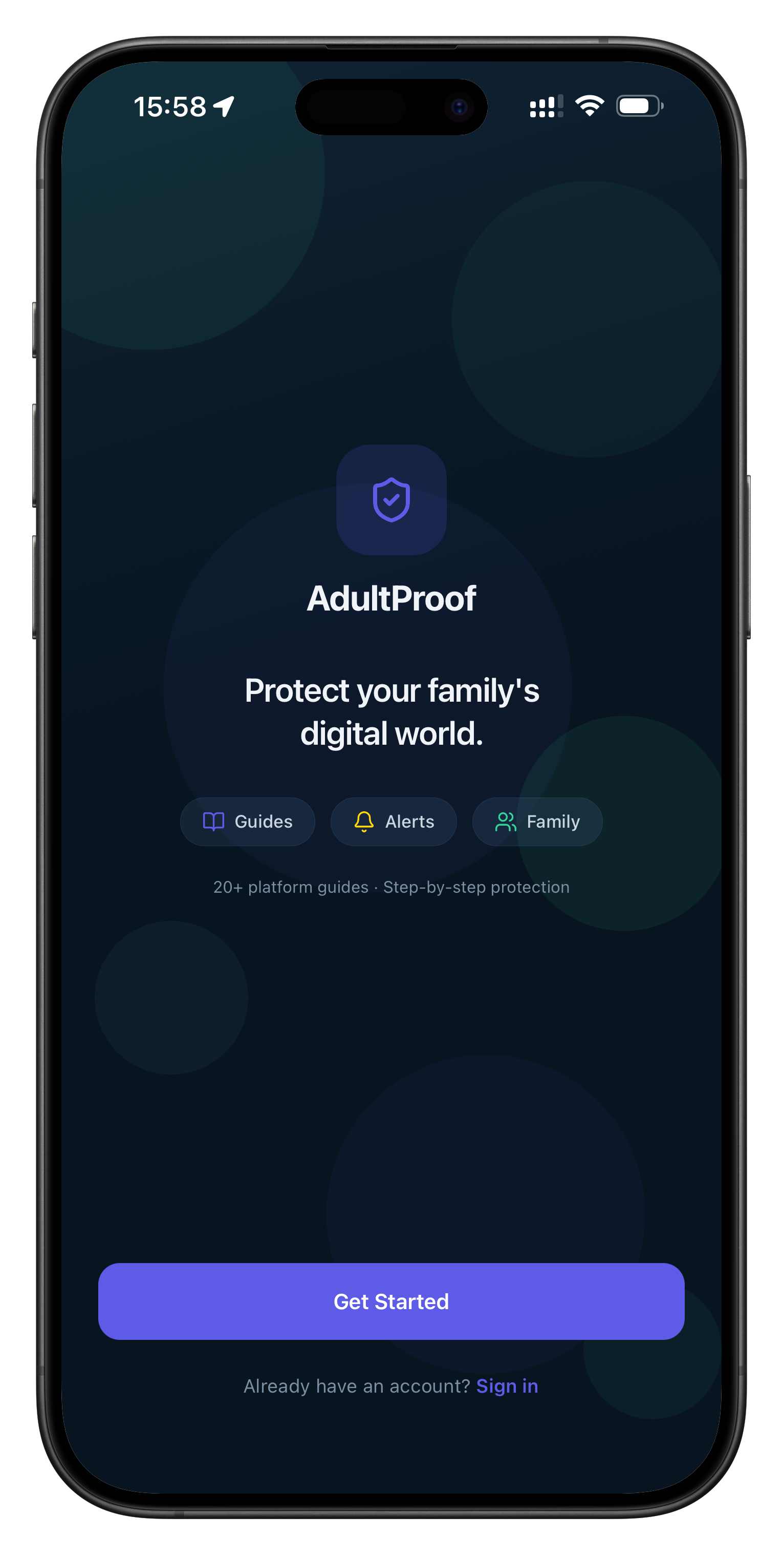AdultProof is a UK-built online safety app that helps parents protect their children in a practical, step-by-step way. Instead of hidden monitoring or complicated tech, we guide families through the privacy settings, safety controls and digital risks that matter most.